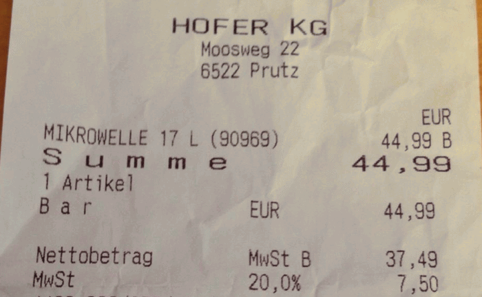 oft auf Kassenbelegen, Kundenkopien oder Rechnungspapieren zu sehen, die von Thermodruckern verwendet werden